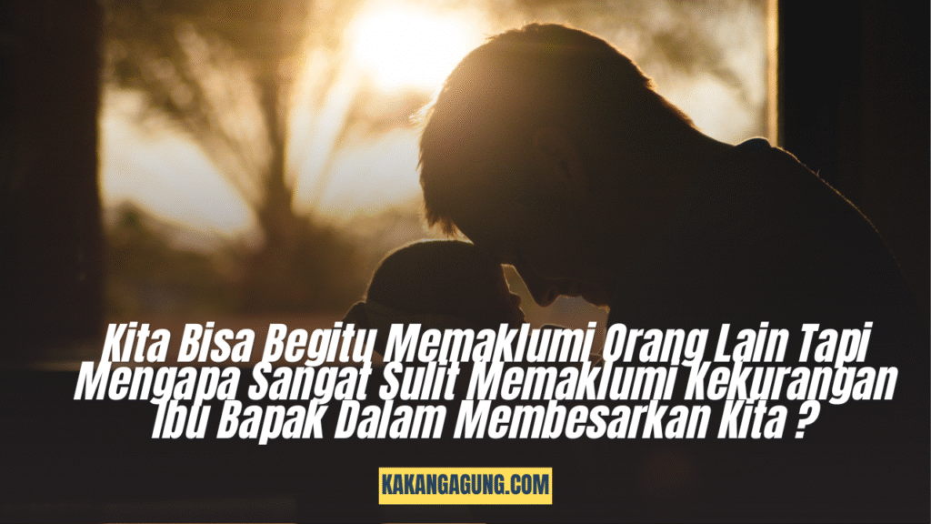 Jika kita bisa begitu memaklumi orang lain, bisa begitu ramah dan menyuguhkan senyum sekalipun pada mereka yang bermuka masam, bisa sebegitu pengertiannya kepada atasan, mengapa rasanya kita tidak bisa memaklumi kekurangan ibu dan bapak kita dalam upayanya membesarkan kita ?